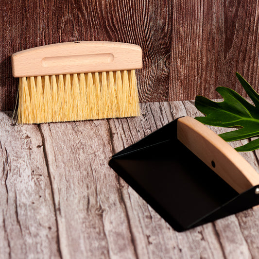 Wood Broom and Metal Dustpan